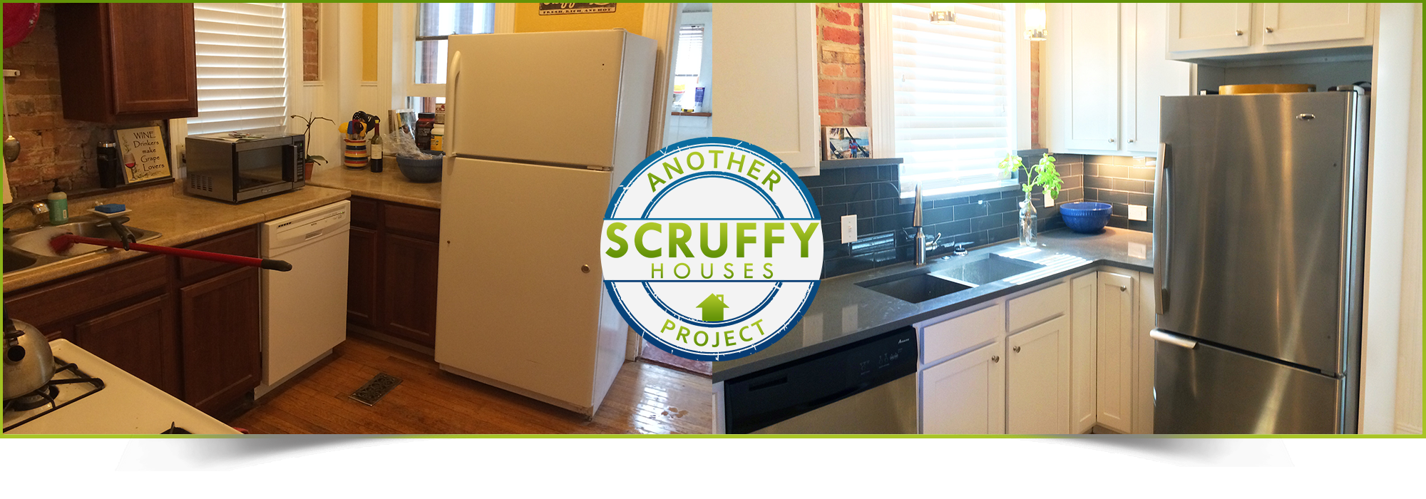 This kitchen was a hot mess. Though the picture reflects otherwise, the refrigerator and stove were actually in the rooms adjoining the kitchen when we purchased the property. Not because they wanted them there, but because there simply wasn’t room. The owners of the property chose to partner with us on this flip and they lived in the house through this remodel before the sale of the house. So we initially made the kitchen more useful by temporarily cutting in spaces for the appliances so we could work on those adjoining rooms. But when we got to the kitchen, it was all hands on deck to get them a kitchen gutted, rebuilt, and up and running before they returned from a long weekend trip. We took this one to the studs and the brick, and put in all new everything. We enhanced and tuckpointed the damaged brick backsplash, and we opened a wall to help the kitchen flow into the living area. It turns out this house actually sold for an additional $40k more than we even expected, and the owners got to keep all of it since they had the patience to wait for the remodel to be completed in order for them to get their money. It’s always fun for an owner when that happens!